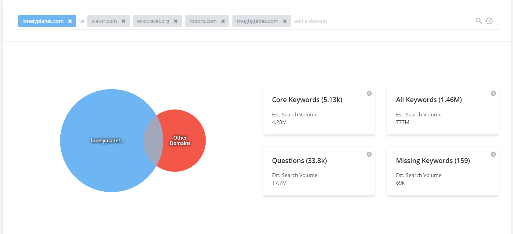 Input your web domain (or one of your top competitors if your website is new), and the algorithm will find the websites that are competing with you for keywords.